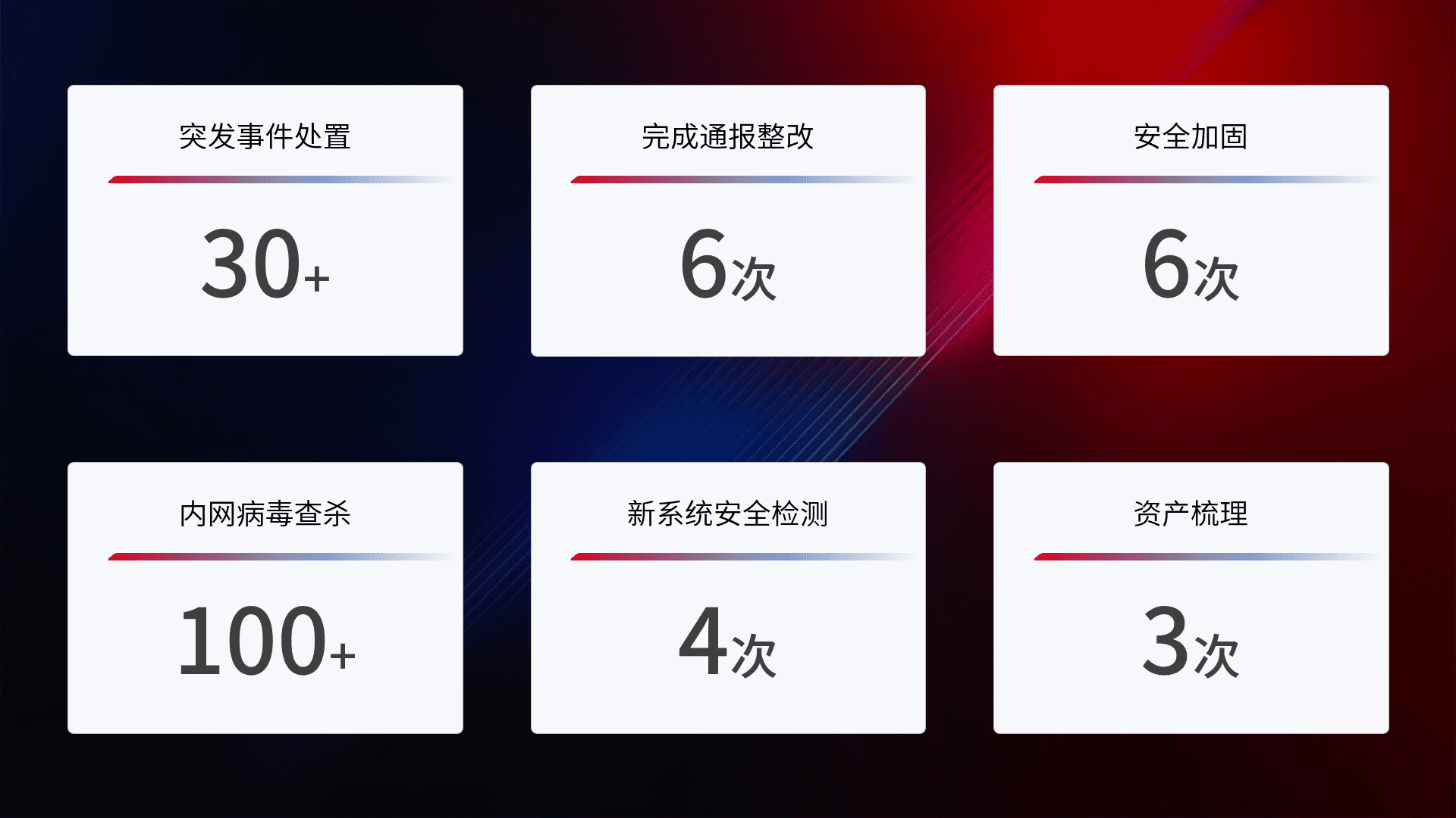 网络安全加固与风险管理:通过技术加固手段,,,,如加强区域隔离,,,,缩减攻击内网横向移动的范围;优化现有网络安全管理制度,,,,降低网络威胁暴露面,,减少被黑客攻击的可能性。。